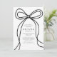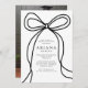This elegant black and white graduation party photo invitation features a chic black doodle bow with graduation party details in classic typography on a clean white background, and includes one full photo on the back.