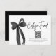 Modern Black Bow QR Code College Fund Graduation Card 🎓🖤🎀📱