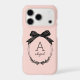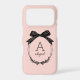 Modern Black Bow Stylish Girly Blush Pink Monogram iPhone 17 Pro Case.