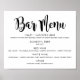 Help your guests find their perfect drink with this bold brush script "Bar Menu" sign. The layout organises beverages by category including craft beer, domestic beer, red wine, white wine, and more, making it easy to display your full drink selection at the reception bar. The clean black and white design works with any wedding aesthetic. All categories and drink details are fully customisable.
