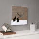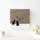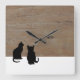 Modern black cat silhouettes, pets, sitting on wood wall clock.