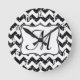 Modern Black Glitter Chevron Zig Zag Stripe Fabric Print Pattern Monogram Initial Wall Clock Personalised