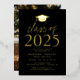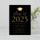 Invite guests to celebrate the grad with our modern class of 2025 graduation party invites. The invites feature a graduation cap at the top with "Class of 2025" displayed in gold foil lettering with a black background. Personalise the invites by adding the graduate's name, school, and graduation party details. The gold foil graduation party invites reverse to display the graduate's photo.