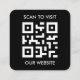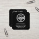 Modern and minimal black and white square business card design features your business logo and custom QR code on the back. Customise the wording with your preferred business information, such as the business name, address, phone number, or website. Black background and white text colour can be changed.