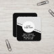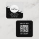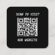Design a sleek and minimalistic black and white square business card. Showcase your business logo and personalised QR code on the reverse side. Tailor the text to include your chosen business details, such as the name, address, phone number, or website. Both background and text colours are fully customisable to suit your preferences.