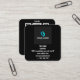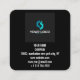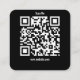 Modern and minimal black and white square business card design features your business logo and custom QR code on the back. Customise the wording with your preferred business information, such as the business name, address, phone number, or website. Black background and white text colour can be changed.