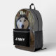 Get this modern personalised dog photo backpack for yourself or to gift a dog owner. This design features minimal design in black white and grey colours with photo template. This product can be easily edited with your personal photo and text/name. If you need help with the customisation of the product please message me via Zazzle.