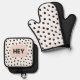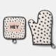 Modern Black Dots & Bubble Chat Pink With Hey Oven Mitt & Pot Holder Set