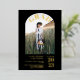 Graduate with distinction, invite with elegance! Our modern black 5-photo graduation invitations are the bold statement you need to make. Featuring a bold font in real gold foil with editable black, invite your guest to your open house and announce your graduation.