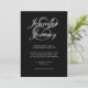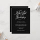 These custom wedding invitations feature a modern and minimalist white and grey calligraphy script design on a simple black background. Personalise with your names and wedding date. Best of wishes for your wedding and marriage! Designed by Susan Coffey.