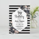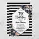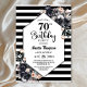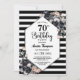 Modern Black Floral Striped 70th Birthday Party Invitation