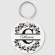Modern Black Floral Wreath Split Monogram "C" Key Ring