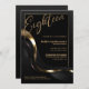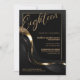 Celebrate your milestone 18th birthday in style with our chic and sophisticated black party invitation. With its customisable text, you can personalise the invitation. This invitation features a fine gold frame that encloses the text, adding a touch of luxury to your special occasion. The gold and grey abstract wavy ribbon design adds a modern and stylish look to the invitation and creates a sense of flow and movement. The overall design is understated yet beautiful, making it perfect for those who prefer a more refined aesthetic.