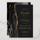 The left-hand edge of this elegant modern wedding invitation features a black watercolor agate border trimmed with faux gold glitter. The customisable text combines handwriting, copperplate and italic fonts in real gold foil on an off-black background. The reverse side features a matching black and gold agate design.