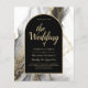 Introducing our luxurious black and gold wedding stationery collection, featuring a stunning smokey black and white with gold accents agate look backdrop and arch frame for the text. This design is perfect for couples who want to add a touch of elegance and sophistication to their wedding stationery.