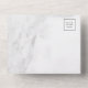 The left-hand edge of this elegant modern all-in-one wedding invitation and RSVP features a black watercolor agate border trimmed with faux gold glitter. The customisable text combines gold-coloured handwriting and italic fonts with black copperplate on a grey and white faux marble texture background. The return address appears on the outside flap and the reverse side of the detachable RSVP card in black and gold-coloured text on marble.