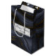 Birthday gift bag with a beautiful image of dark abstract agate stone. Colours swirl in waves. Main colours are black, blue-grey with a faux-gold ribbon running through the design. Modern and trendy.