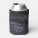 Wedding can coolers with a beautiful image of dark abstract agate stone. Colours swirl in waves. Main colours are black, blue-grey with a faux-gold ribbon running through the design. Modern and trendy.