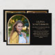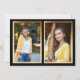 Elegant and modern black and gold custom graduation announcement for the Class of 2025 (or any year). This card is designed on both front and back. The front of the card has an arch-shaped photo, graduate's name, school name, graduation year, and details of accomplishments and/or plans for the future. The back of the card allows you to add 2 more photos framed in gold.