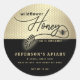 Modern black gold bee script Honey jar Classic Round Sticker