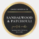 Modern product packaging round labels in elegant black and gold - perfect for candle jars, tins or pouches. Featuring gold foil effect border and black background with modern serif type and space for your brand name. Add your scent names and make professional stickers for your products. Edit in the design editor and reveal a few gold script text options including 'scented candle', 'soy wax candle' , 'luxury candle' and 'handmade' which you can choose from.