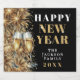 The text runs vertically down the right side in a mix of white and gold serif fonts. "Happy New Year" is featured prominently at the top, with space below to add the family or host’s name and the year for a personalised finish.