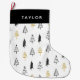 Fun and festive, Modern Black & Gold Christmas Tree Pattern Personalised Christmas Stocking is the perfect way to decorate your home while waiting for Santa to arrive. Features black and gold tree pattern on a white background. White text "Taylor" can be changed to fit anyone's name.