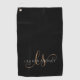Modern Black Gold Feminine Script Monogrammed Golf Towel