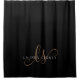 Modern Black Gold Feminine Script Monogrammed Shower Curtain