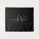 Modern Black Gold Feminine Script Monogrammed Tapestry