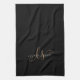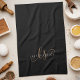 Modern Black Gold Feminine Script Monogrammed Tea Towel