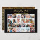 Modern Black Gold Glitter Elegant Script 24 Photo Collage Holiday Card. All the photos and texts are pre-arranged for you to personalise easily and quickly with your own details.
