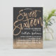 Modern Black Gold Glitter Typography Sweet 16 Invitation
