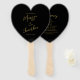 These custom wedding program hand fans feature a modern and minimalist faux gold hand lettered script design on a simple black background. Personalise with your names and wedding date on the front and wedding program details on the back. Best of wishes for your wedding and marriage! Designed by Susan Coffey.