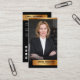 This modern and elegant business card design is perfect for any loan signing agent looking to project an image of professionalism and trustworthiness. Featuring a sleek black and gold colour scheme, a professional photo, and a stylish feather pen logo, this card is sure to leave a lasting impression on clients.