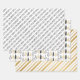 Stylish and festive, this gift wrap set is the perfect way to wrap all your presents for friends and family this holiday season. The set features 3 different designs: 1. Black calligraphy "Merry Christmas," 2. black and gold hand drawn evergreen trees, and 3. gold and white candy cane stripes pattern.