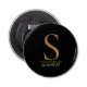 Modern Black Gold Monogram Elegant Feminine Script Bottle Opener.