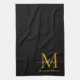 Modern Black Gold Monogram Initial Script Custom Tea Towel