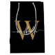 Modern Black Gold Monogram Initial Stylish Script Medium Gift Bag