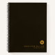 Modern Black Gold Monogram Notebook. A modern minimalist notebook with a simple gold monogram medallion, name and title or role on a black background. A simple modern monogrammed notebook for your workspace. Ideal for consultants, attorneys, real estate agents, corporate or executive coaches, or any other business professional, or a thoughtful office gift for him or her.