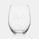 Modern Black Gold Monogram Script Stemless Wine Glass