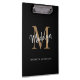 Modern Black Gold Monogram Stylish Script Name Clipboard.Easily personalise this modern elegant clipboard with your custom monogram and name.