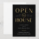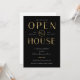Create stylish business event invites for your house warming or new business party with this faux gold effect Open House Invitation. This modern black and gold open house event invitation features a trendy layout with sophisticated fonts, space for your logo and event details, perfect to invite guests to your Housewarming Celebration.
