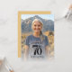 This Elegant Black and Gold Surprise 70th birthday invitation perfectly blends a naturally personal touch with a Sophisticated Modern aesthetic. The design features "Softened" Photo Overlay template for you to Add Your Own Photo. The Typography is a Chic mix of Bold serif and Elegant Script, ensuring the "70th" milestone stands out for high legibility. The Trendy Handwritten signature font for "Birthday Party" adds that personal touch and makes the event clear! The "Modern Gold" back has event details organized and presented in a clean Minimalist Elegance and are fully customizable in the template! (You are also provided a huge reminder at the top that it's a Surprise!)