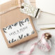 Cute and stylish, these stickers are perfect for your holiday gift-giving needs. Features black pine needles and gold berries. All black text is customisable to fit any holiday greeting as well as your family name and the year. Great for Christmas, Hanukkah, Birthdays, and more.