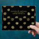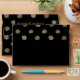 The design features a stylish polka dot background in black and gold with matching editable gold wording.