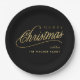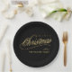 Modern Black & Gold Script Merry Christmas Paper Plate