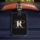 Modern Black Gold Script Monogram Name Luggage Tag