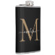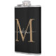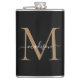 Modern Black Gold Stylish Monogram Girly Script Hip Flask