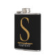 Modern Black Gold Stylish Monogram Girly Script Hip Flask